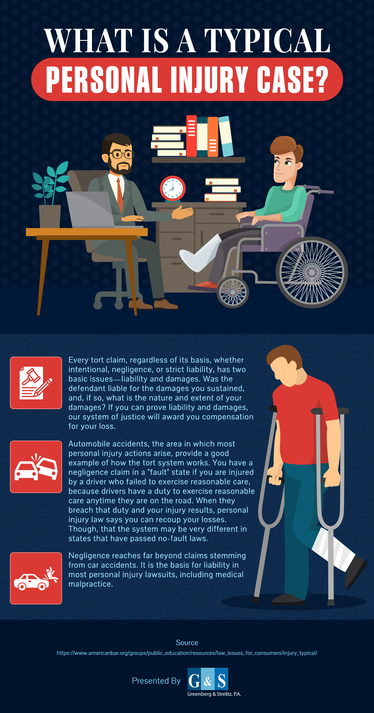 This info-graphic titled ‘What is a typical personal injury case?’ provides us an overview of personal injury lawsuit. A good personal injury lawsuit is one that clearly defines liability, damages, and collect-ability, and if any of these three items are not acquired from the case, the results will not be favorable for the plaintiff. These are legal conflicts that takes place when one person suffers harm from an accident or injury, and someone else might is legally accountable for that harm. Victims often find it difficult to recover financial damages that are obligatory to cover their medical treatments, replace permanently lost wages, and counterbalance their pain and suffering. An experienced counsel should be there to prove all above mentioned elements during the trial or settlement court proceedings. Also, if the case involves medical wrongdoing, only your personal injury attorney would be able to work with insurance companies and hospital attorneys to bring results in your favour.
